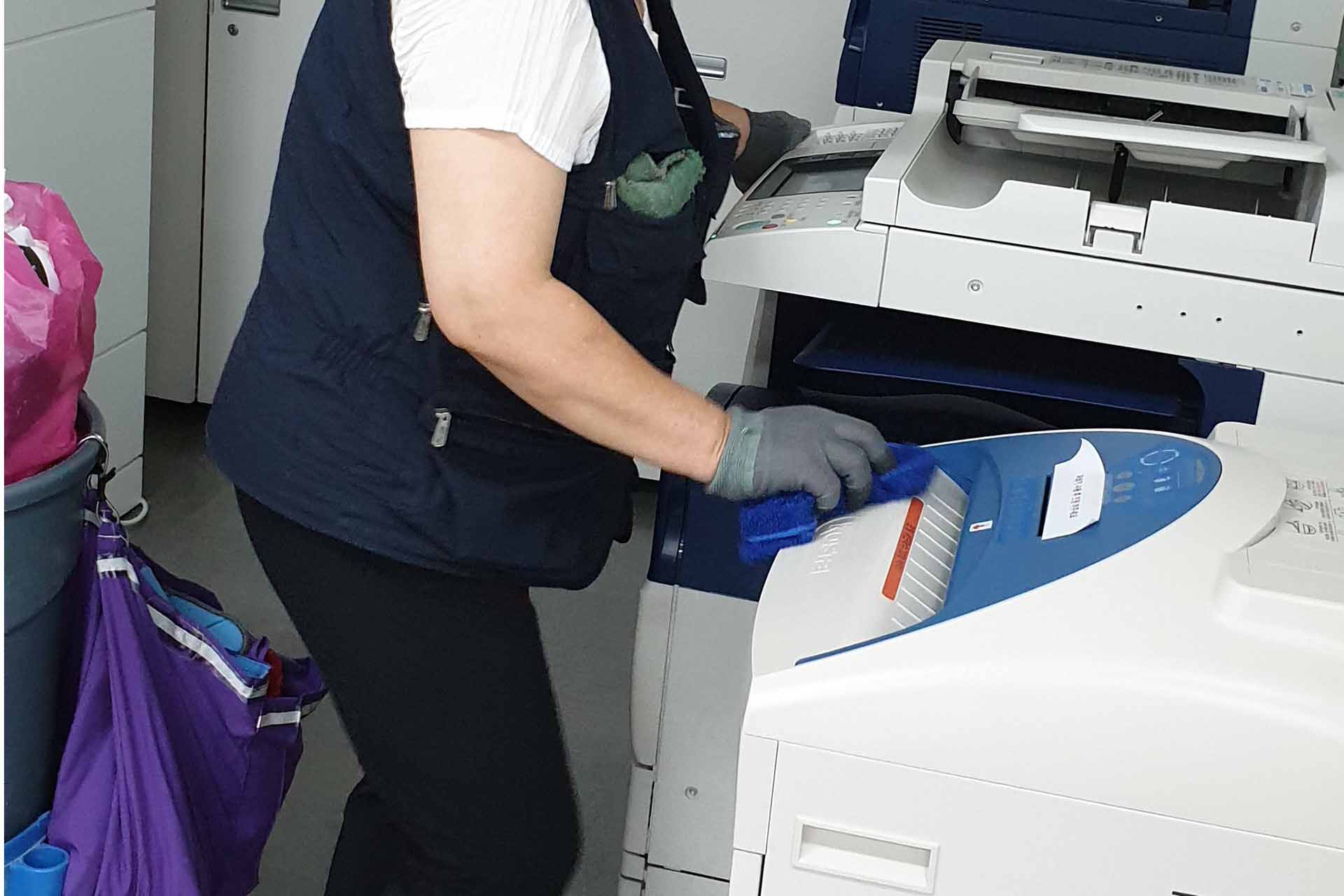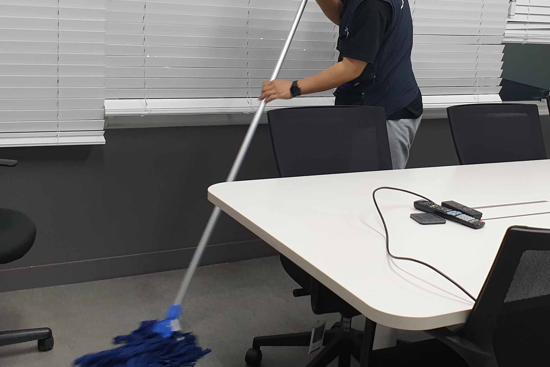 사무실에 많은 집기류들의 구석구석 물걸레와 마른 걸레를 사용하여 먼지 청소를 진행합니다.